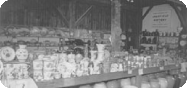 In the fall of 1943, Joseph and Marie Cowen, newly married , purchased a large farm near the Housatonic River. They raised cows, chickens, and sheep, and sold produce at their roadside farm stand. After seeing an article about pottery in a family magazine, Joe and Marie hauled a bucket of clay from the clay pit on their land to see if they could use this resource to make a living. From Marie’s first cup and Joe’s first saucer came the beginnings of the present-day Sheffield Pottery, Inc. Clearing out the animals in 1946, the Cowens turned the barn into a small showroom, selling handmade pottery fired in a 6’ x 6’ kiln. The business rapidly flourished, and by December 1949, Sheffield Pottery was featured in Redbook magazine.