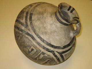 Early decorated pottery is shown from a variety of cultures. Discussion of paint and slip decorating. Young students can paint self-hardening clay pots with acrylic paints. Suggestion: Have your young students paint their pinch pot in a historical style like this Chupadero Black-on-White Olla water jug, circa 1300 A.D (photo courtesy WHITE SANDS MUSEUM.) And then allow them to paint their coil-built pot in their own style. Advanced students should attempt primative decoration with slip, engobe or Terra Sigillata and proceed to kiln or pitfiring.