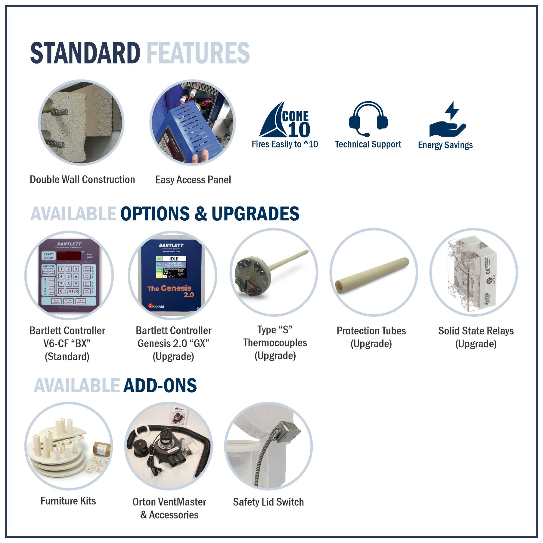 Kanthal A-1 elements, stainless steel jacket and fittings, and excellent Cone Art craftsmanship all are standard.