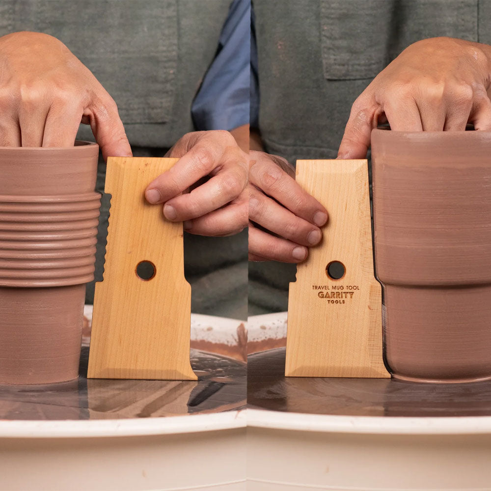 We designed this pottery tool around our favorite travel mugs to give you the perfect forms for sipping coffee, tea, or any beverage on the go! One side is a classic travel cup curve and the other instantly creates a built in "sleeve" for better insulation. Easily press your cylinder into this pottery tool to get the same results over and over, making production a breeze. Whether you need a set of ceramic travel mugs for your home or you're prepping for your next shop update, the Travel Mug Tool will become an essential rib in your toolbox.