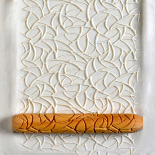 HR HandRollers are 10 cm (4 inches) long and 1.5 cm (5/8ths inch) in diameter. You simply roll them with your hand across the clay or up the wall of a pot to create a beautiful pattern in the clay. The MKM Roller Board can help create long, smooth rolls and avoiding knuckle bumps.