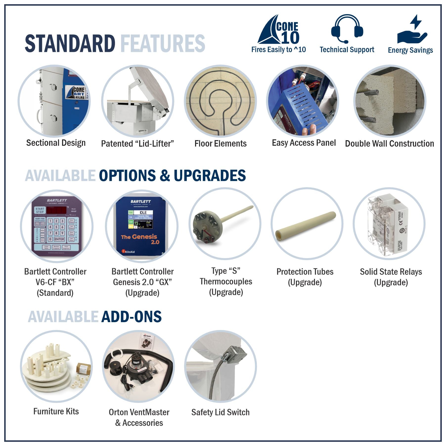 The Tuckers Cone Art Kiln Model BX4227D also comes with our patented LID LIFTER at NO EXTRA CHARGE.